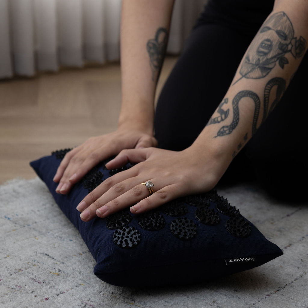 Acupressure Pillow – 44x22 cm|Heat-Bonded Spike Heads | Buckwheat Fill – Midnight Blue