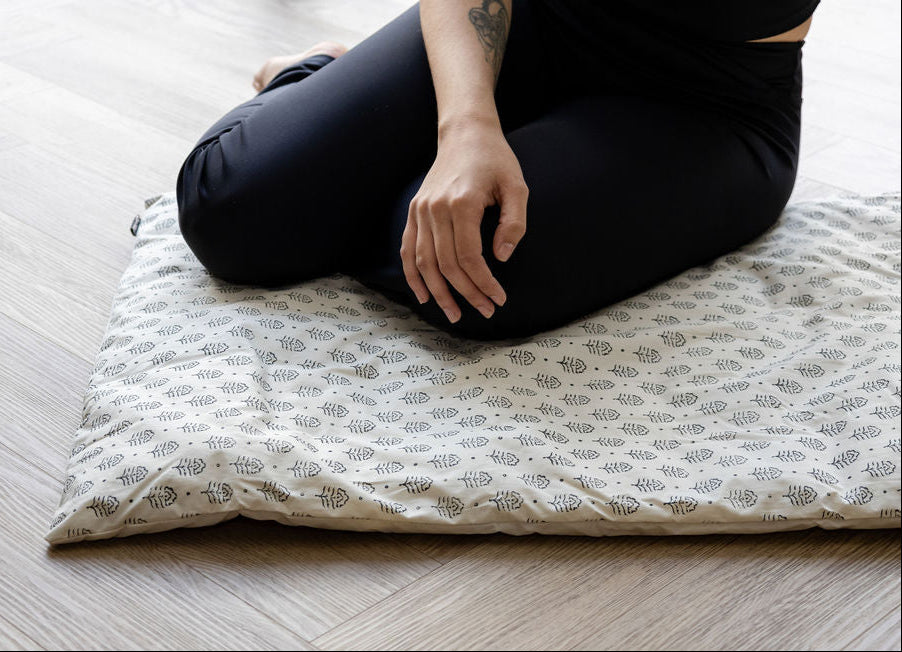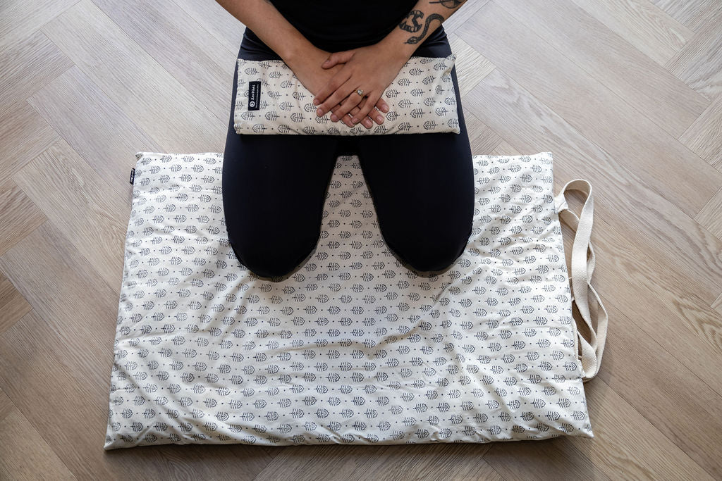 Find mindful comfort anywhere with Zenvibes  Organic Meditation Cushion , featuring a beautiful handcrafted floral block print cover. Made from 100% breathable cotton and filled with natural kapok fiber, this lightweight, foldable meditation cushion offers firm yet comfortable support, making it an ideal portable alternative to traditional zafu and zabuton cushions.