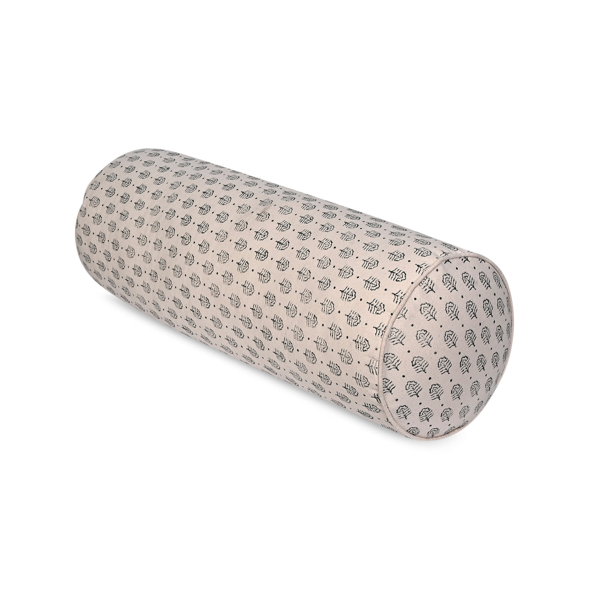 “Handmade Cylindrical Yoga Prop for Deep Support – 100% Natural Cotton, Kapok-Filled, Removable Floral Block Print Cover”