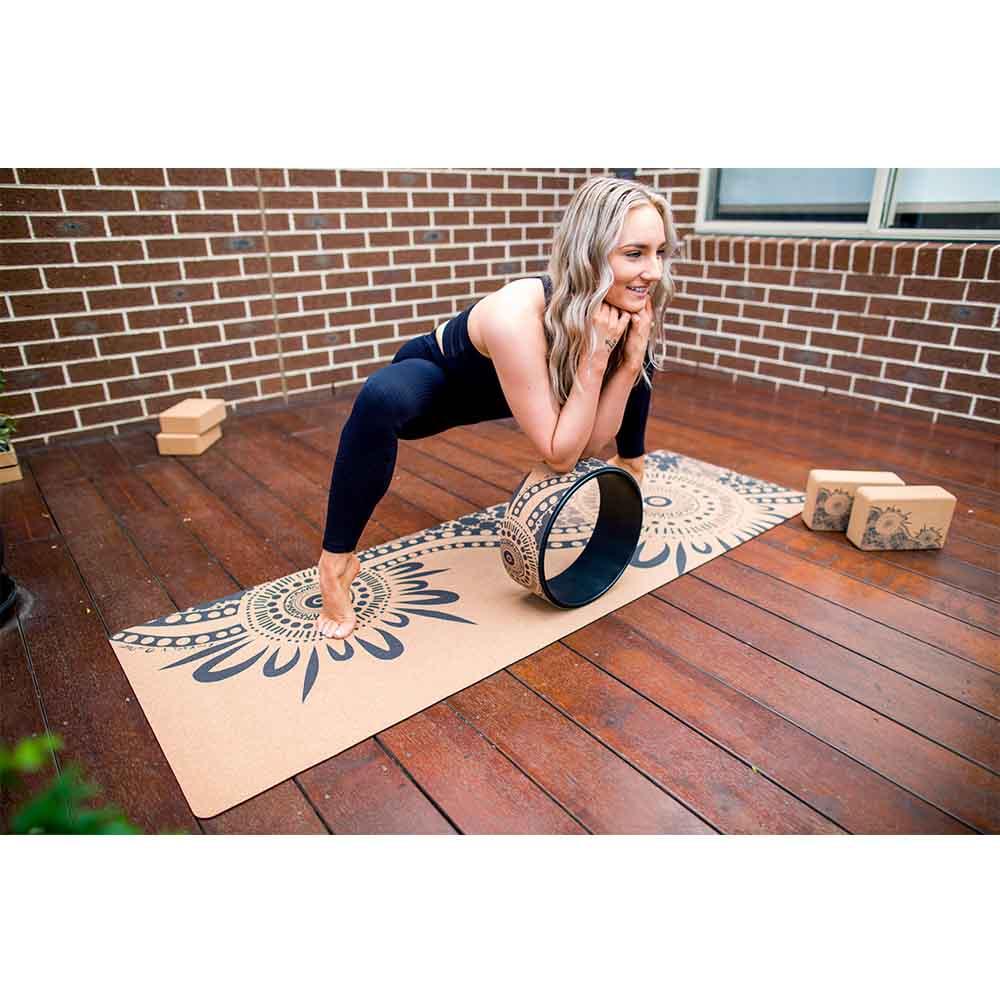 This is such a gorgeous yoga wheel! I use my wheel all the time to lengthen my back and to challenge my balance!
